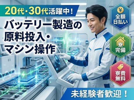 【ア】◆20代・30代活躍中!◆バッテリー製造の原料投入・マシン操作/全額日払い