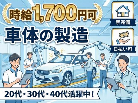 【ア】■時給1,700円可■車体の製造/20代・30代・40代活躍中!/寮完備・日払い可